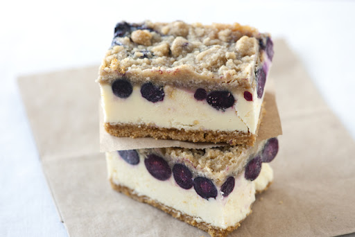 While the graham cracker base cools, make the cheesecake bar filling: If using a food processor, wipe it with a paper towel to remove any crumbs from earlier then add cream cheese, eggs, 2 tablespoons lemon zest, the lemon juice and 1/2 cup of granulated sugar. Cover then process until smooth and creamy. If you do not have or do not want to use a food processor, use a hand blender to blend cream cheese, eggs, 2 tablespoons lemon zest, the lemon juice and 1/2 cup of granulated sugar until smooth and creamy.