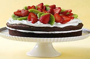 MIX remaining sour cream, COOL WHIP, sugar and vanilla. Cut brownie horizontally in half. Stack layers on plate, filling with half the sour cream mixture. Top with remaining sour cream mixture and fruit.