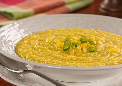 Ladle into bowls and serve sprinkled with chives; garnish with reserved corn kernels.