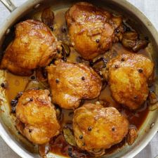 In a bowl combine water, apple cider vinegar, soy sauce, fish sauce, honey, red pepper flakes, black peppercorns, anise pods and bay leaf. Set aside.