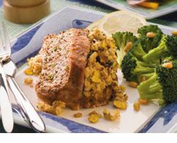 Cut deep pocket in side of each pork chop. Season chops with remaining 1/4 teaspoon each salt and pepper, and stuff each one with an equal amount of corn bread mixture.