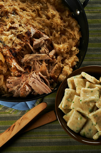 Pork & sauerkraut is a traditional favorite, but we added zesty chive dumplings to this New Year’s dish to make it a little more modern.