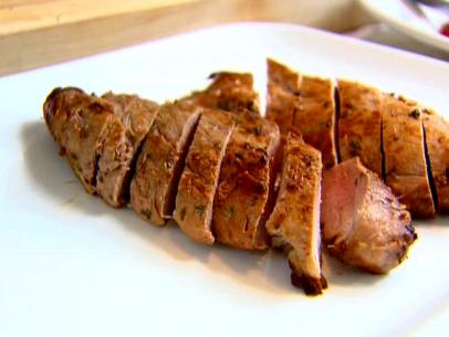 Remove the tenderloins from the marinade and discard the marinade but leave the herbs that cling to the meat. Sprinkle the tenderloins generously with salt and pepper. Heat 3 tablespoons olive oil in a large oven-proof saute pan over medium-high heat. Sear the pork tenderloins on all sides until golden brown. Place the saute pan in the oven and roast the tenderloins for 10 to 15 minutes or until the meat registers 137 degrees F at the thickest part. Transfer the tenderloins to a platter and cover tightly with aluminum foil. Allow to rest for 10 minutes. Carve in 1/2-inch-thick diagonal slices. The thickest part of the tenderloin will be quite pink (it's just fine!) and the thinnest part will be well done. Season with salt and pepper and serve warm, or at room temperature with the juices that collect in the platter.