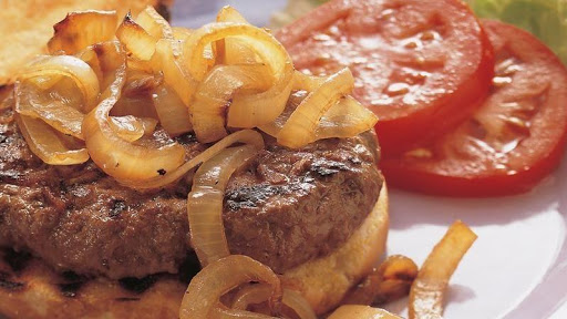 2 Brush beef patties with steak sauce; sprinkle with half of the soup mix (dry). Place half of the onions on center of each foil piece. Sprinkle with remaining soup mix, the brown sugar and vinegar. Fold foil over onions so edges meet. Seal edges, making tight 1/2-inch fold; fold again. Allow space on sides for circulation and expansion.