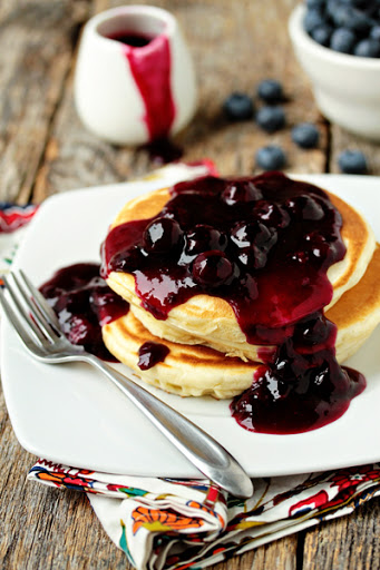 3. Slowly stir the corn starch into the blueberries, taking care not to crush the blueberries. Simmer until the homemade blueberry sauce is thick enough to coat the back of a metal spoon, about 5 minutes.