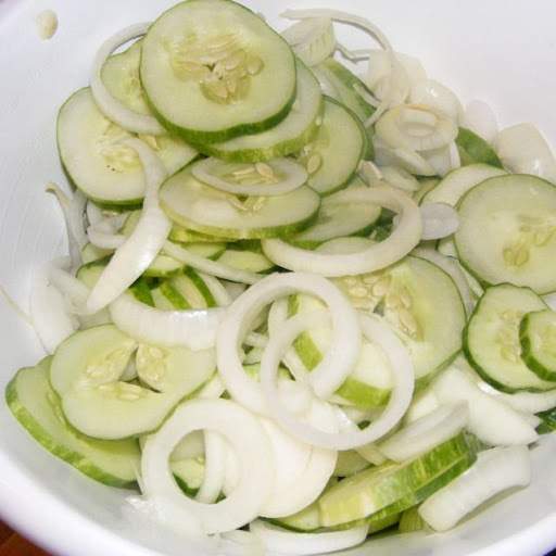 Add onion rings. Mix water and vinegar; pour over cucumber mixture.