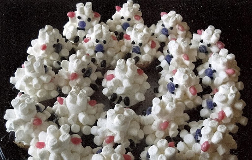 - 1 About 1 cup White Fluff Frosting, recipe follows