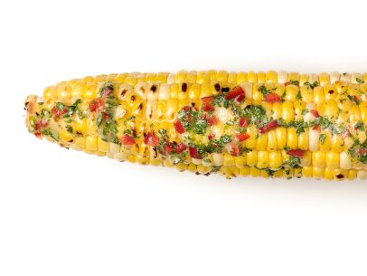 Grill the corn, turning occasionally, until lightly charred and tender, 10 to 15 minutes. Remove to a platter and smear with the cilantro butter. Squeeze the lime wedges on top.