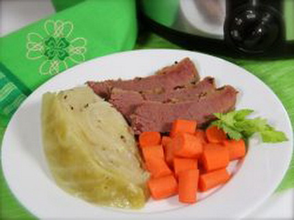 Rinse corned beef and place in 5-6 quart slow in slow cooker. Sprinkle pickling spices over meat.