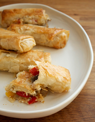 Eggplant, Pepper and Feta-Stuffed Phyllo Boreks