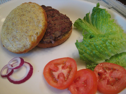 Using a ¼-cup measuring cup, scoop up ¼ c. batter and fill your molds, spreading the batter evenly with the back of a spoon. Batter will be about ½” thick in the molds and there should be enough batter for 7 buns. Sprinkle on sesame or poppy seeds if desired. Pop buns into a 350º oven and bake for about 20 minutes or until done to the touch in the center and lightly browned around the edges. Cool a few minutes. Slide knife around edges of buns to loosen and carefully remove them to a cooling rack or cutting board. When totally cool, slice them laterally and they are ready to use for your grilled burgers or other sandwiches. Store any leftover in a plastic bag in your refrigerator. Please note these buns boast some impressive nutritional stats below.