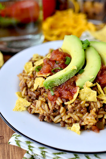- Toppings: crushed tortilla chips, salsa, sliced avocado, chopped green onions