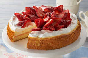 Bake 35 to 40 min. or until center is almost set. Run knife around rim of pan to loosen cake; cool before removing rim. Refrigerate 4 hours. Spread cheesecake with Cool Whip just before serving; top with berries.