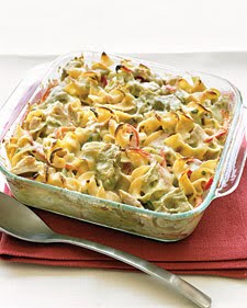 Preheat oven to 400 degrees. Lightly oil two 8-inch square (or other shallow 2-quart) baking dishes. In a large pot of boiling salted water, cook noodles until 2 minutes short of al dente; drain, and return to pot.