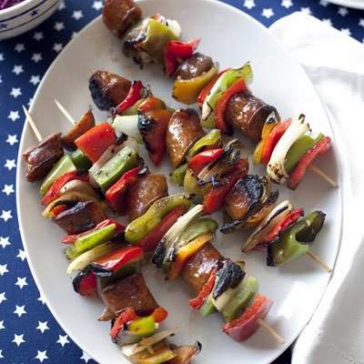 Grilled smoked sausage and fresh vegetables make a great light summer or holiday meal. To save time these kabobs can be prepped a day before serving, wrapped, and refrigerated.