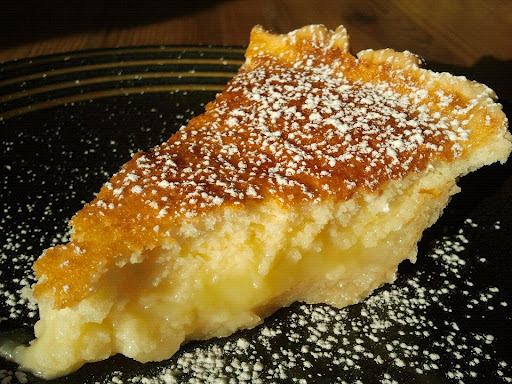 Preheat oven to 375 degrees and place oven rack on lowest setting. In a medium bowl combine sugar and melted butter. Stir in flour, salt, lemon peel, and lemon juice. In a small bowl beat egg yolks with milk until well blended, stir into lemon mixture. In another medium sized bowl, beat egg whites with electric mixture until they hold soft peaks. Gently fold egg whites into lemon mixture. Do not over mix. Pour filling into prepared pie crust. You may have a little filling left over, put into a couple of small ramekins and bake along with pie. Bake on lowest rack until the top is browned and center jiggles slightly when gently shaken. 45-55 minutes. If top brown too much drape it with foil. Let cool. You can serve at room temperature, but I prefer it chilled. Garnish each slice with a dust of powdered sugar. Oh my lemon heaven!!!
