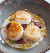 Scallops with Ajo Blanco and Pickled Grapes