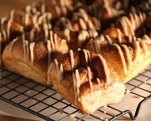 Combine icing ingredients and drizzle over warm rolls.