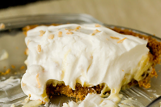 4. Make the Whipped Cream Topping: When ready to serve, beat the cream and sugar in the chilled bowl of an electric mixer at medium speed to soft peaks; add the rum and vanilla. Continue to beat to barely stiff peaks. Spread or pipe the whipped cream over the chilled filling. Sprinkle the reserved 1 tablespoon toasted coconut over the whipped cream and serve. Cover any leftovers with plastic wrap and store in the refrigerator.