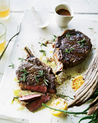 Rib Eye Steaks with Pete's Barbecue Sauce