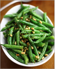 An Italian-style green bean salad with a simple basil and olive oil dressing and freshly toasted pine nuts.