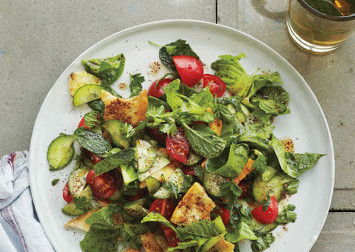 Coating the toasted pita in olive oil prevents it from getting soggy when mixed with the vegetables and dressing.