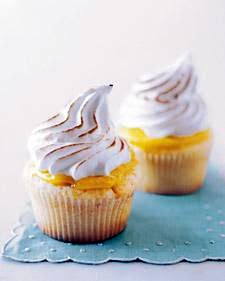 To finish, spread 1 tablespoon lemon curd onto middle of each cupcake. Fill a pastry bag fitted with a large open-star tip (Ateco #828 or Wilton #8B) with frosting. Pipe frosting onto each cupcake, swirling tip slightly and releasing as you pull up to form a peak. Hold a small kitchen torch 3 to 4 inches from surface of frosting, and wave it back and forth until frosting is lightly browned all over. Serve immediately