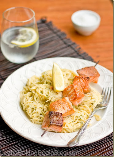 Salmon Fish Kabobs w/ Creamy Dill Spaghetti