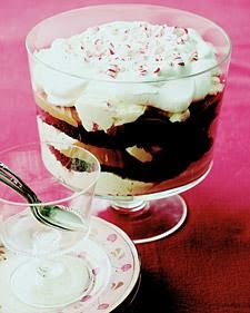 Every spoonful of a trifle -- a layered English dessert -- holds a spectrum of flavors and textures. Dip into ours, made with milk-chocolate pudding and snowy white-chocolate mousse balanced by chocolate liqueur-soaked cake. Crumbled candy inside and on top adds crunch. To make it more manageable, you can make the trifle components the day before you assemble it. Wrap cake tightly in plastic wrap, and refrigerate the syrup, mousse, and pudding in separate airtight containers.