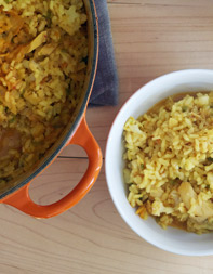 Arros de Baetjo (Bomba Rice with Salt Cod, Cauliflower and Scallions)
