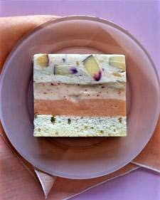 For layers with a colorful contrast, use two different varieties of peach sorbet.