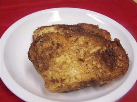 I really love this recipe!! Tonight we had it for dinner, but I didn't have french bread. Instead I used two slices of white bread and spread some cream cheese between them. It was delicious! I also topped it with sugar and nutmeg.