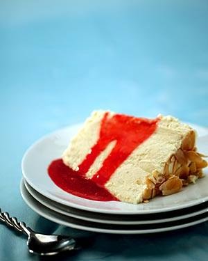 8. Gently spoon the mixture into the soufflé dish or the ramekins. It should come at least halfway up the paper collar. Smooth the top and scatter over the sliced toasted almonds. Freeze until very firm, at least 4 hours. If you freeze it overnight, transfer it to the refrigerator for at least 1 hour to soften before serving. If you make it more than 1 day in advance, once the mixture is frozen solid, cover it with plastic wrap and gently press the wrap against the surface of the soufflé.