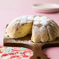 7. To serve, gently invert onto plate and dust top with confectioners' sugar and cocoa, if desired.