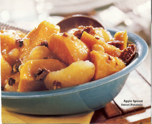 1. Lightly coat a 3 1/2- or 4-quart slow cooker liner with cooking spray. Add sweet potato chunks, apple pie filling, raisins, the 3 tablespoons butter, and spple pie spice; stir gently.
