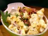 Add the cooked noodles to the cheese mixture to coat. Add the noodle mixture to the prepared baking dish. Mix the remaining cheese and bread crumbs together and sprinkle on top of the noodles. Bake for about 15 to 20 minutes or until bubbling and golden brown. Remove from oven when done and rest for 5 minutes.