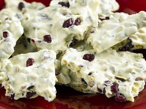 Quickly stir the fruit and nuts into the chocolate. Spread chocolate mixture out on the prepared baking sheet so it's about 1/2-inch thick and the fruit and nuts are coated. Set bark aside at room temperature to harden. Break into angled pieces. Store in an airtight container at room temperature.