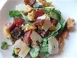Divide tomato mixture among 4 plates. Top each serving with an equal amount of the arugula. With a vegetable peeler, shave the Parmesan over the salad. Serve immediately.