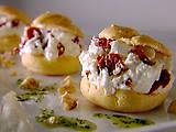 Goat Cheese and Sun Dried Tomato Profiteroles with Herb Oil