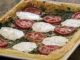 Roll out the puff pastry dough on a lightly floured surface to form a rectangle less than 1/4-inch thick. Place on top of a cookie sheet, lined with parchment paper. Brush dough with egg wash. Bake for 10 minutes.