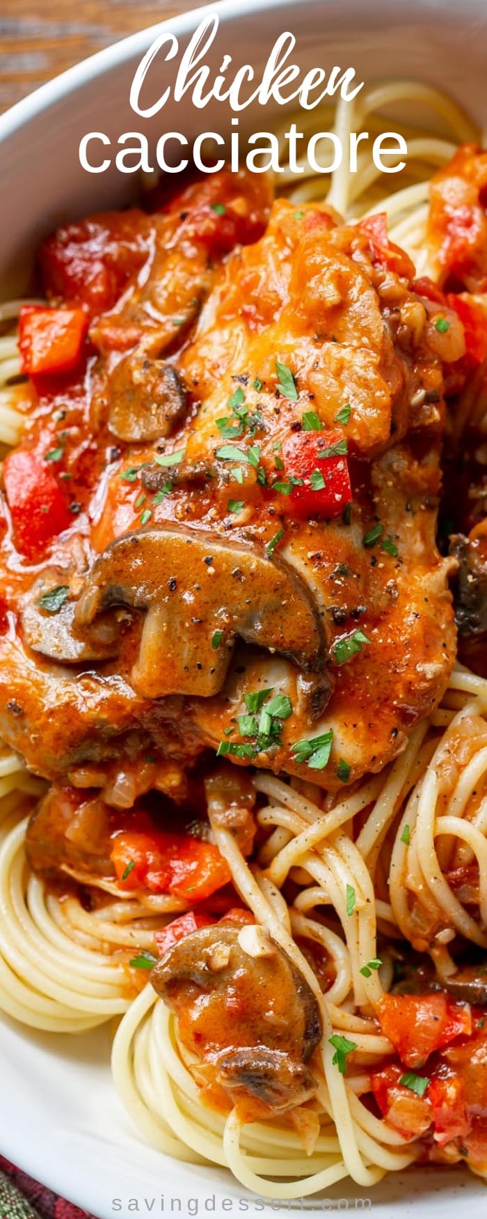 Remove the bay leaves and Parmesan rind and discard. Check seasoning and add salt and pepper if needed. Garnish with fresh chopped parsley leaves. Serve over hot cooked spaghetti or polenta.
