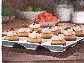 Once the muffins have cooled, pipe a small amount of the cream cheese mixture on top of each one. Garnish with remaining crumbled bacon and remaining chopped chives.