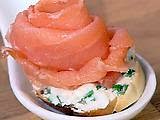 Put the bagels on a cutting board and vertically slice into little rounds, across the diameter. Mix the curd cheese with some finely chopped chives, the lemon juice and black pepper. Taste and adjust the seasoning and lemon. To assemble, spread each piece of bagel with the curd cheese, place a twist of salmon on top, sprinkle with some freshly cut chives, and finally add a drizzle of the best extra virgin olive oil you can afford.