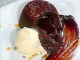 Paint the bottoms of several shallow soup plates with the chocolate bergamont paint. Immediately unmold the cakes onto the plates. Place a pinch of cocoa nibs beside each cake (as a small stand for the ice cream), and place a scoop of star anise ice cream on top of each. Drizzle the citrus reduction around each plate and dust with confectioners' sugar and cocoa powder.