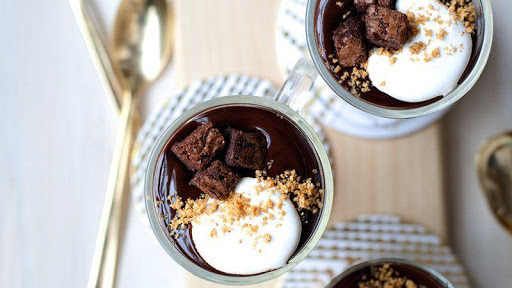 5 In 4 to 8 cups or jars, layer cracker mixture, cream cheese mixture, brownies cubes and ganache. (If desired, spoon additional marshmallow creme, a sprinkle of graham crumbs, or add a few chunks of brownie to the top for garnish.)