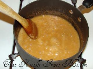 Melt butter in saucepan; add brown sugar and cook over low heat 2 minutes, stirring constantly.