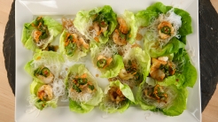 Select smallest whole cupped leaves or tear larger leaves and stack together to form a small cup. Arrange cups side by side on a serving platter. Add a small bed of noodles and a few shrimp to each lettuce cup. Drizzle with Nuoc Cham.