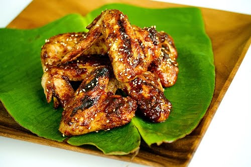 Combine marinade ingredients in blender or food processor. Puree until thickened. Taste. If you want spicier, add another chili and another tablespoon of adobo. Press down on wings to flatten as much a possible. Marinate chicken wings for at least 1 hour.