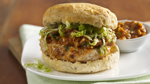 In 12-inch nonstick skillet, cook patties over medium-high heat 5 to 7 minutes, turning once, until thermometer inserted in center of patties reads 165°F.