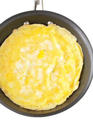 As eggs set, push cooked edges toward the center, letting uncooked portion flow underneath. When the eggs are set, add filling as indicated on each recipe.